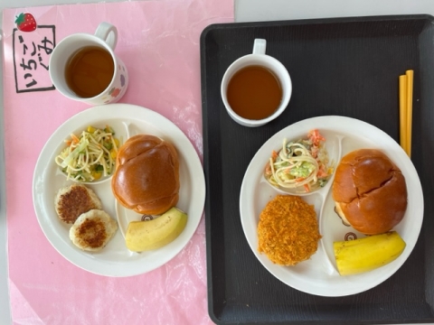 今日の給食: 1月 13日 本日のお給食ロールパンメンチカツスパゲティサラダバナナ今日は3年振りのお餅つきです。朝から幼稚園ではお餅つきの歌が流れみんなワクワクしているます。みんなで突いたお餅は特別美味しかったようで沢山食べることが出来て満足そうでした。また一つ、行事が行えて良かったです。 次へ 今日の給食 前へ