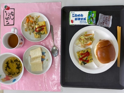 今日の給食: 8月 10日 今日のお給食ロールパンいちごジャム野菜ミートオムレツキャベツとツナの和え物牛乳今日もお外で水遊びや泥んこ遊び、みんなたくさん遊べましたね!午後も暑さに負けずに過ごしましょうね 次へ 今日の給食 前へ