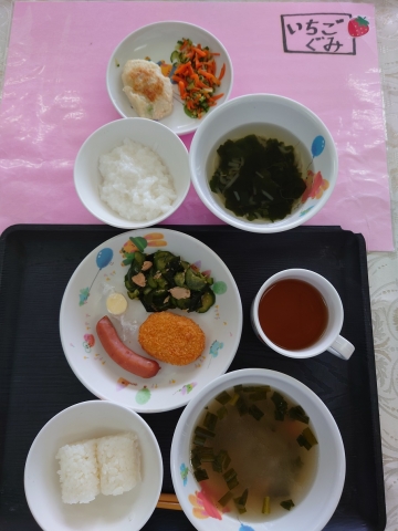 今日の給食: 4月 21日 ごはん野菜コロッケとウインナーツナとワカメのサラダ中華スープチーズ★今日はとってもいいお天気ですね 年長さんはピクニックですね! とっても楽しみですね 次へ 今日の給食 前へ